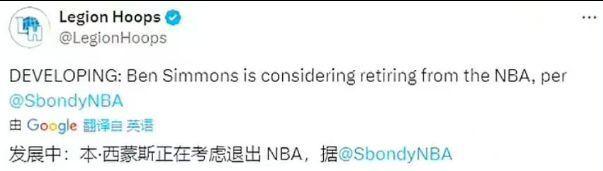北京时间9月4日,根据美媒报道,正在考虑退出NBA。据悉,自从成为了自由球员之后,西蒙斯至今还没有收到任何一家球队的offer。值得一提的是,此前有消息透露对其有兴趣,但是却迟迟没有和西蒙斯签约,这也是让西蒙斯陷入了自我质疑。更重要的是,在西蒙斯的社交媒体上,关于的一切动态已经全部删除,留下的只有西蒙斯参加各种商业活动和晒出自己出海钓鱼的照片。尽管西蒙斯在联...
